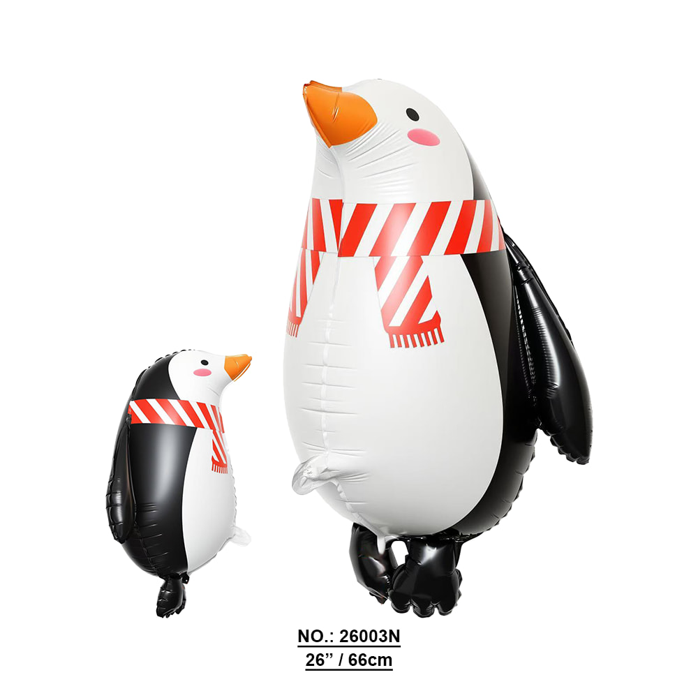 Helium (floating) / Air (decor)Cute 4D penguin shape with red striped scarf, full of festive and playful charm.