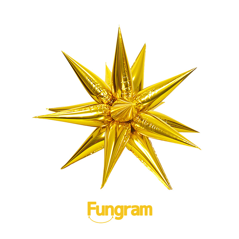 AirFungram presents the 60" Starburst Foil Balloon Series, a spectacular 3D decoration perfect for high-impact event styling.