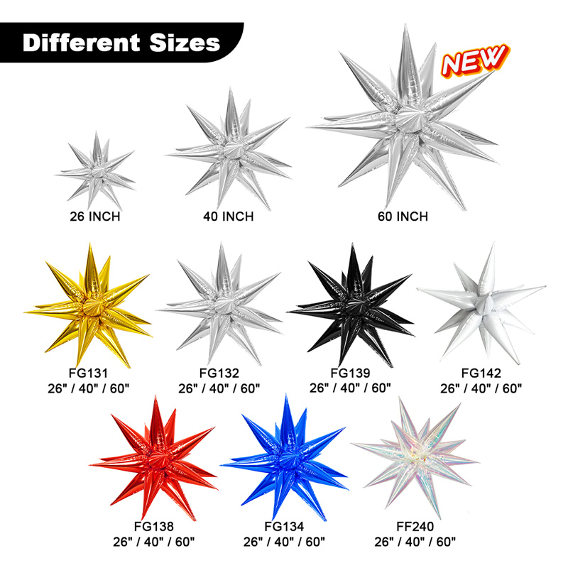 AirFungram Balloons expands the popular Blue Starburst Foil Balloon series with a striking new 60 inch size, joining the original 26" and 40" options. This balloon is a composite design made of 12 individual foil points that form a 3D starburst when assembled. Perfect for creating dynamic, eye-catching displays at weddings, celebrations, retail showcases, and stage events.