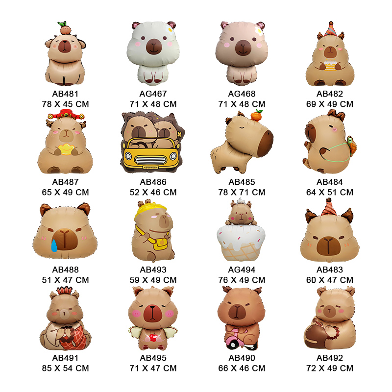 Air/HeliumAdorable Capybara Design: Lovable and relaxing appearance that attracts attention at kids’ parties, zoo themes, and birthdays.