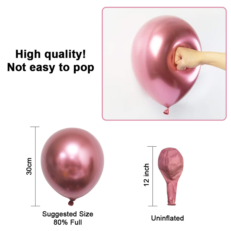 Made from high-quality natural latex with a smooth, reflective surface, these balloons bring a bold, upscale aesthetic — ideal for premium celebrations, corporate decor, and high-fashion installations.