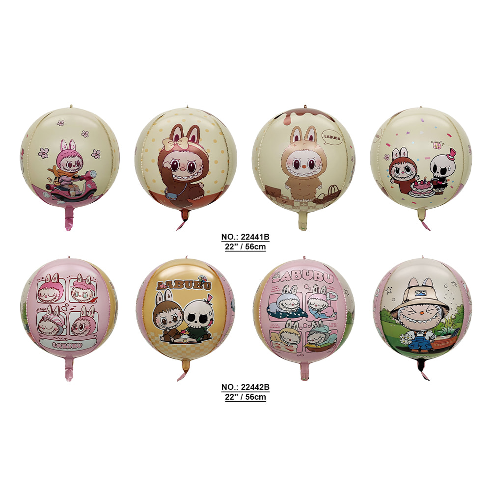 | Design | 4D sphere shape, each balloon with 4 unique Labubu prints |