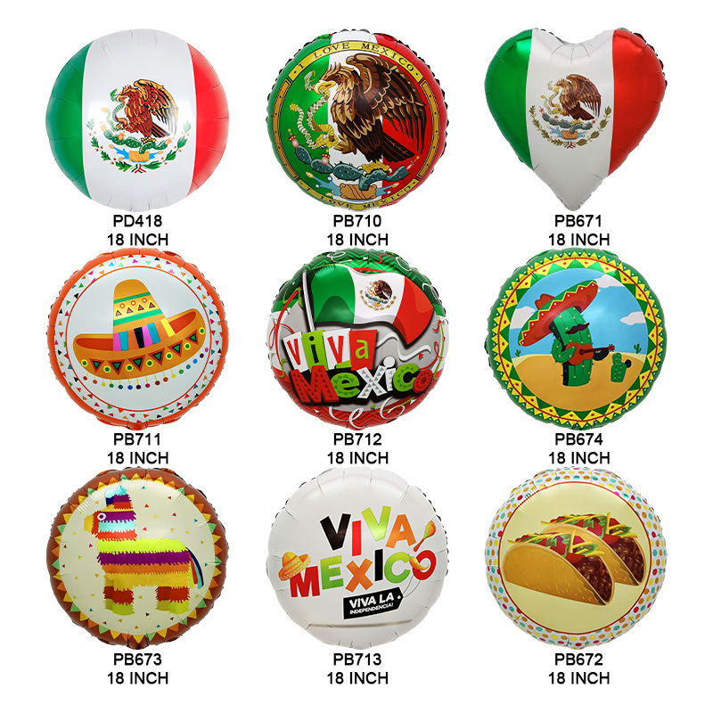Air/HeliumFungram Balloons proudly introduces the Mexico Series 18-Inch Foil Balloons, designed to bring color, culture, and celebration to your store shelves or party supply catalog. This collection blends festive Mexican elements with vivid printing and premium foil materials—ideal for cultural festivals, Cinco de Mayo events, and general party decoration.