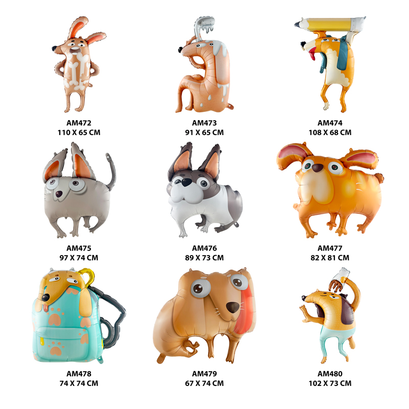 Helium or AirFungram Balloons presents our newest collection: Puppy-Themed Foil Balloons, perfect for pet lovers, children’s parties, and retail displays. This series features 9 different dog designs, each with its own charming expression, shape, and posture.